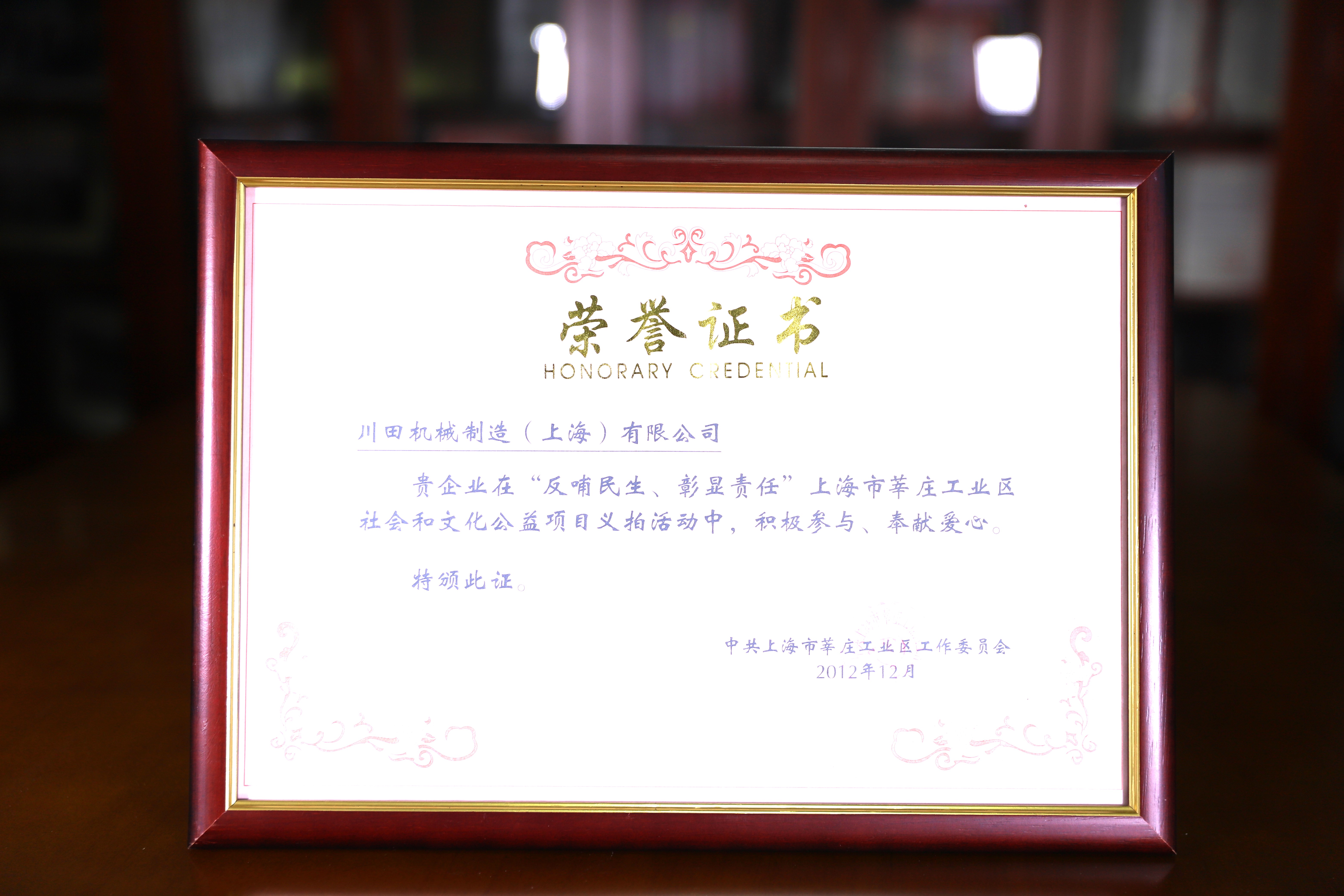 2012 莘莊工業(yè)區(qū)社會和文化公益項目榮譽證書