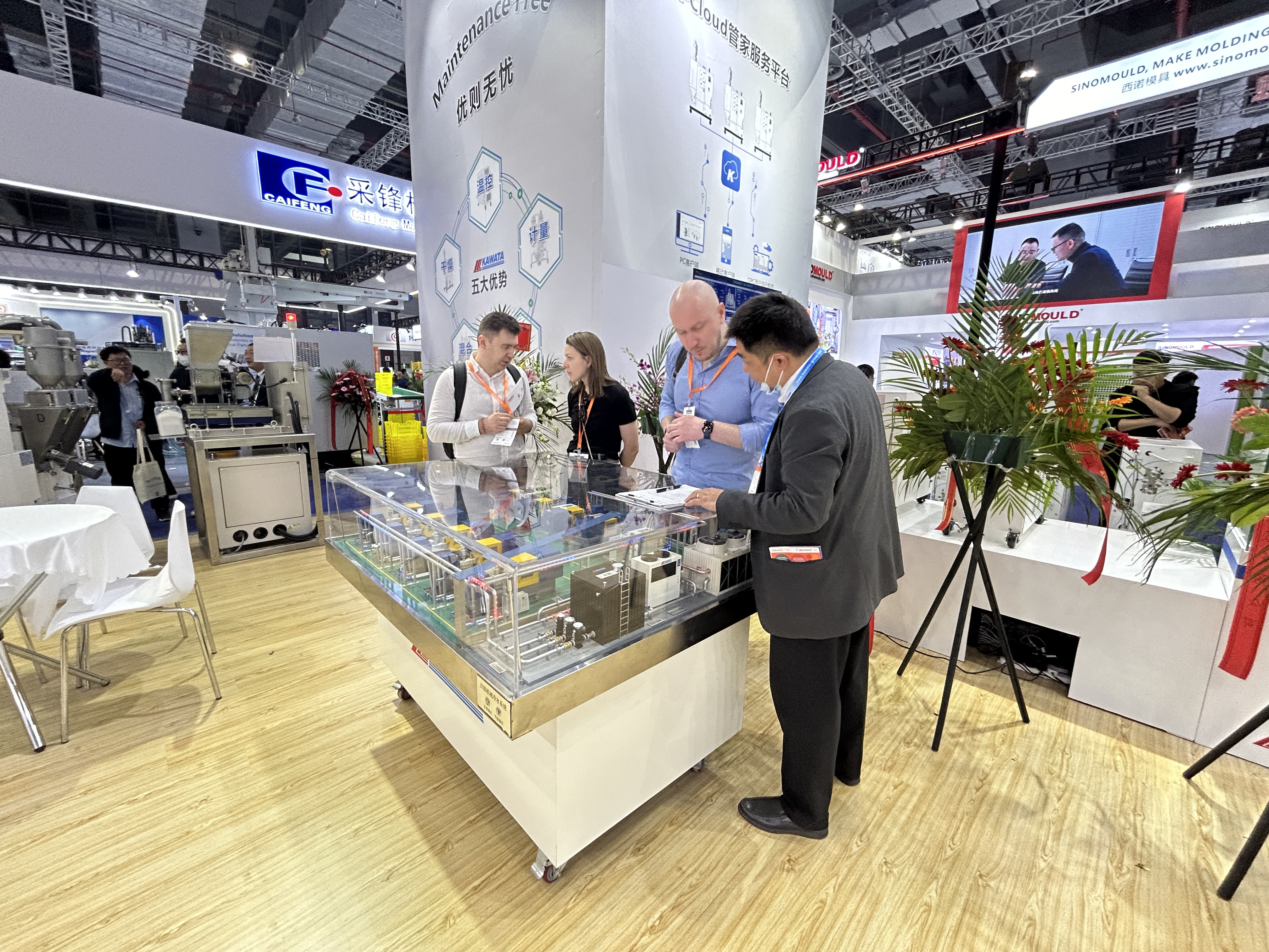 本次展會,川田機械制造(上海)有限公司(簡稱:川田上海)以“智能+節(jié)能”為主題呈現(xiàn)了一場高科技智能化盛宴。川田上海全面展現(xiàn)了K系列主打產(chǎn)品外,還現(xiàn)場演示了原料輸送和除粉塵裝置的產(chǎn)品及專業(yè)的技術(shù)講解。展臺現(xiàn)場吸引了觀眾紛紛駐足關(guān)注,展位人氣爆棚。行業(yè)專業(yè)人士和現(xiàn)場海內(nèi)外客戶前來展臺共享行業(yè)前沿信息,同時積極開拓新客戶,建立新的業(yè)務(wù)合作關(guān)系。